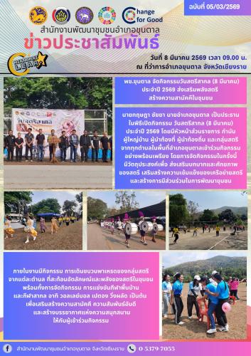 ⛰️🌸 พช.ขุนตาล จัดกิจกรรมวันสตรีสากล (8 มีนาคม) ประจำปี 2569 ส่งเสริมพลังสตรี สร้างความสามัคคีในชุมชน 🌸⛰️