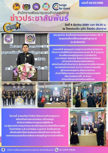 📸 ภาพ/ข่าว : สำนักงานพัฒนาชุมชนอำเภอขุนตาล